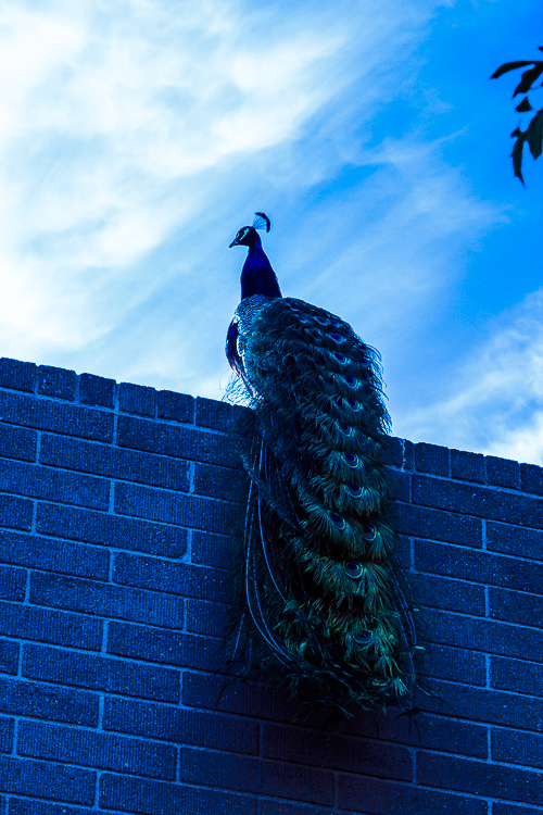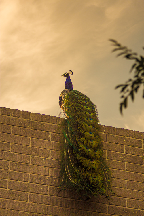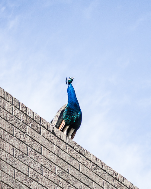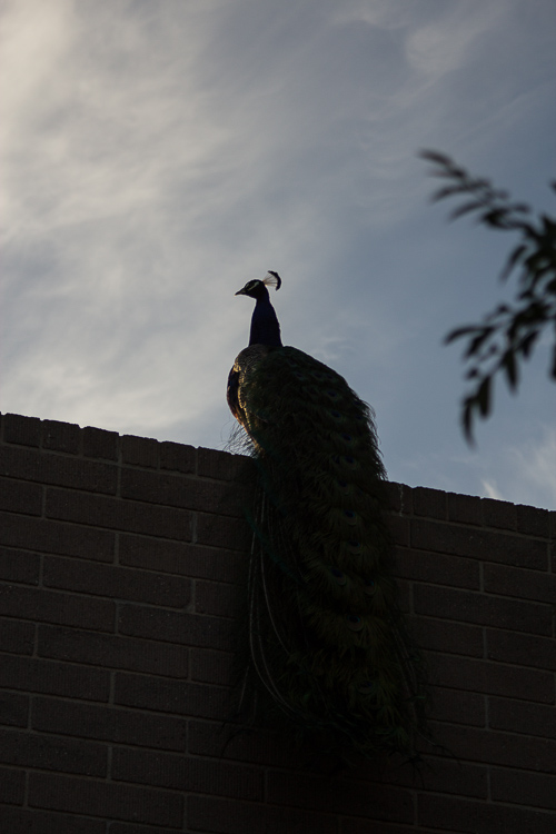 There he was, the king of all peacocks that morning.  And unless there is a secret little peacock ladder, that guy had to fly up to the top of that roof.  Just like I have never seen a baby pigeon (have you?), I have never seen a peacock fly.  I still haven’t, but I bet it is a sight to see.