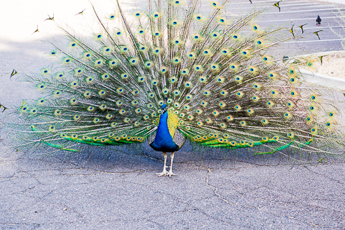 It all started last week when in the extreme early morning (that darn golden hour), I was in the parking lot of the Glendale Library awaiting the arrival of a family that I was photographing that morning.  The place sounded like “Wild Kingdom”.  Apparently, a few of the peacocks from neighboring Sahuaro Ranch Park decided to wander over and check out the surroundings at the library, or do whatever peacocks do at 6:15 in the morning.  Whatever it was, it was loud.
