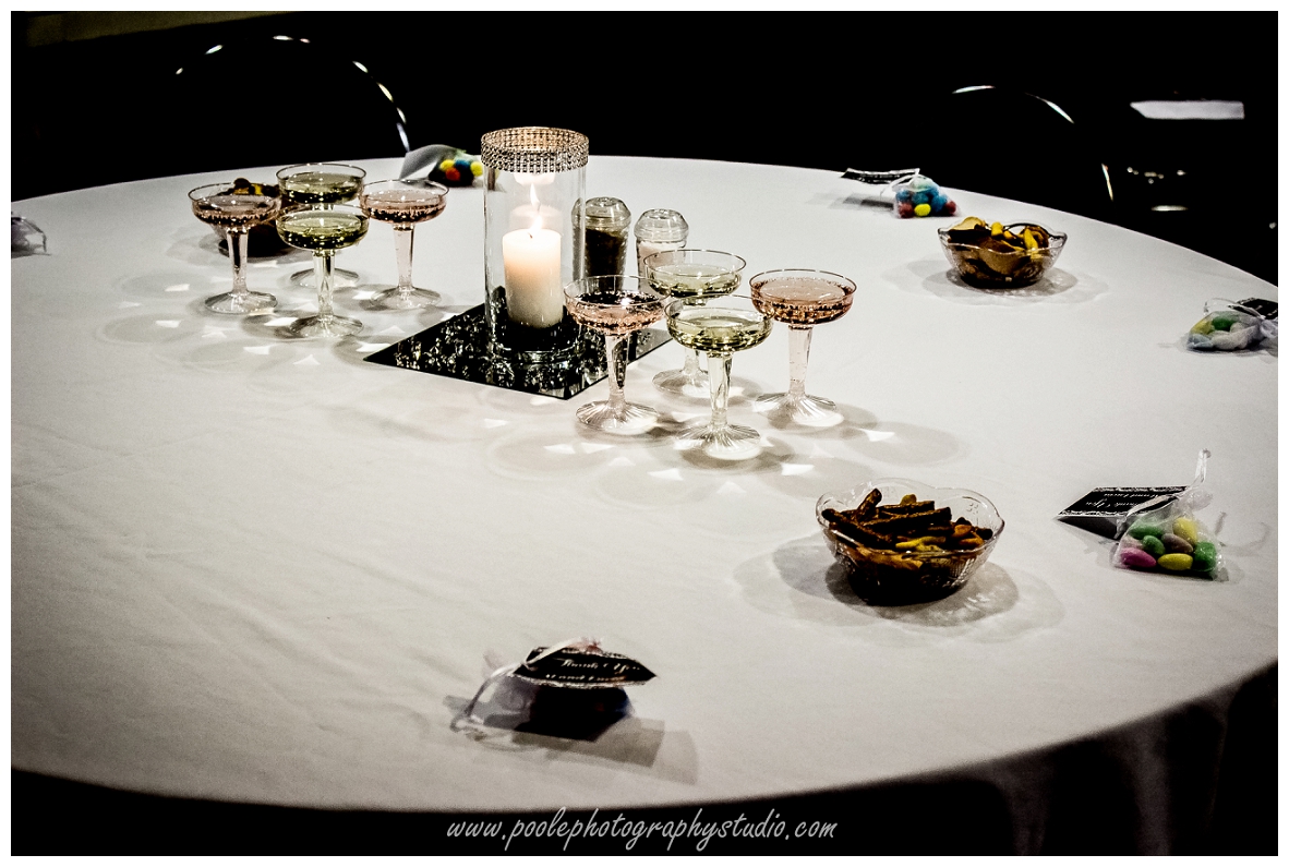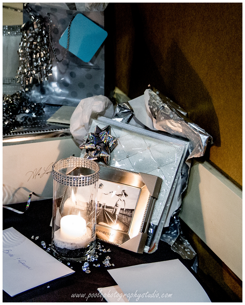 The venue was the LaQuinta Inn. The party planners were Kristen, Margaret, Delores and Joey. The colors were a simple and elegant black and white.